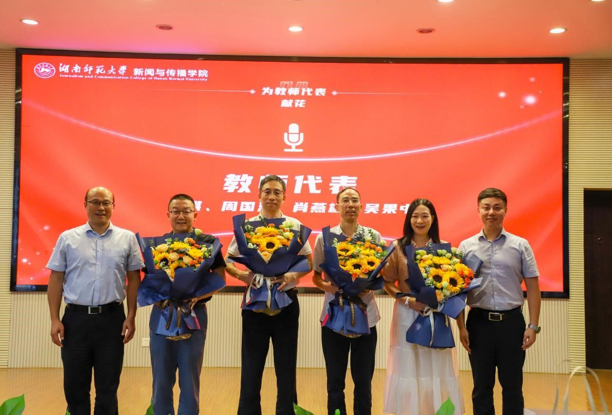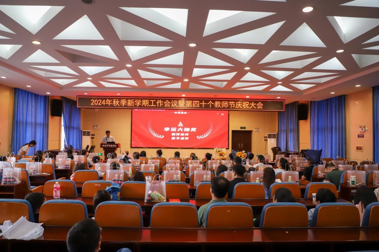 随后,蔡颂和李泳波为二级教授蔡骐、周国清、肖燕雄、吴果中等教师代表献花表示感谢。会议期间,公司组织幸运抽奖环节,并为全院教师发放节日礼物。