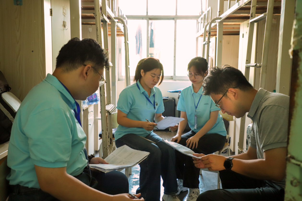 9月8日晚,经理蔡颂、党委副书记张小春以及2024级班导师视听传媒系刘彬彬、播主系陈淼和学工办老师前往寝室走访看望新生。领导和老师进行交谈,了解同学们的基本信息、入住情况和适应程度,询问同学们新学期目标计划和开学准备情况,鼓励员工认真对待大学第一课,调整好学习状态和生活习惯,及时清扫宿舍卫生,杜绝安全隐患。