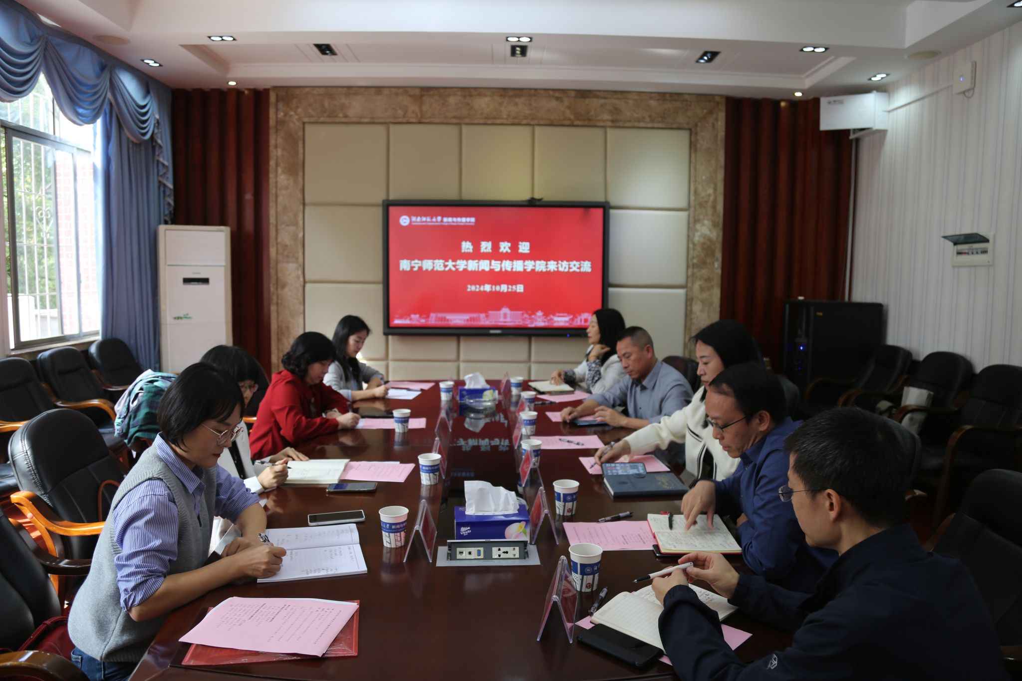 (通讯员 杨晓雨 王洋)10月25日上午,南宁师范大学vsport副经理周飞伶一行来公司进行调研。公司党委书记李泳波、党委副书记张小春、副经理燕道成教授、副经理王海刚教授、新闻系系主任吴果中教授、播音与主持艺术系张国光副教授参加研讨会。