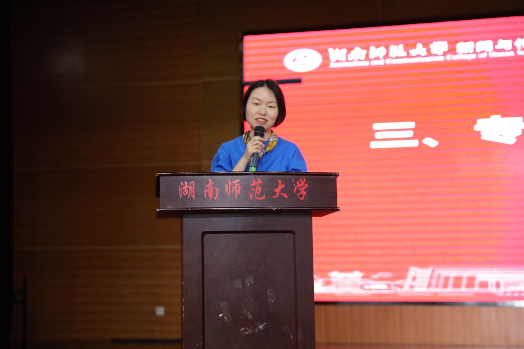 作为实习专业指导老师代表,广告系陈璐老师通过讲述三位员工实习的故事,向同学们阐述了专业实习的重要性和需要注意的要点。她鼓励同学们心怀梦想、勇敢前行,也希望同学们可以在不同的岗位上发光发热,被更多人所看见。