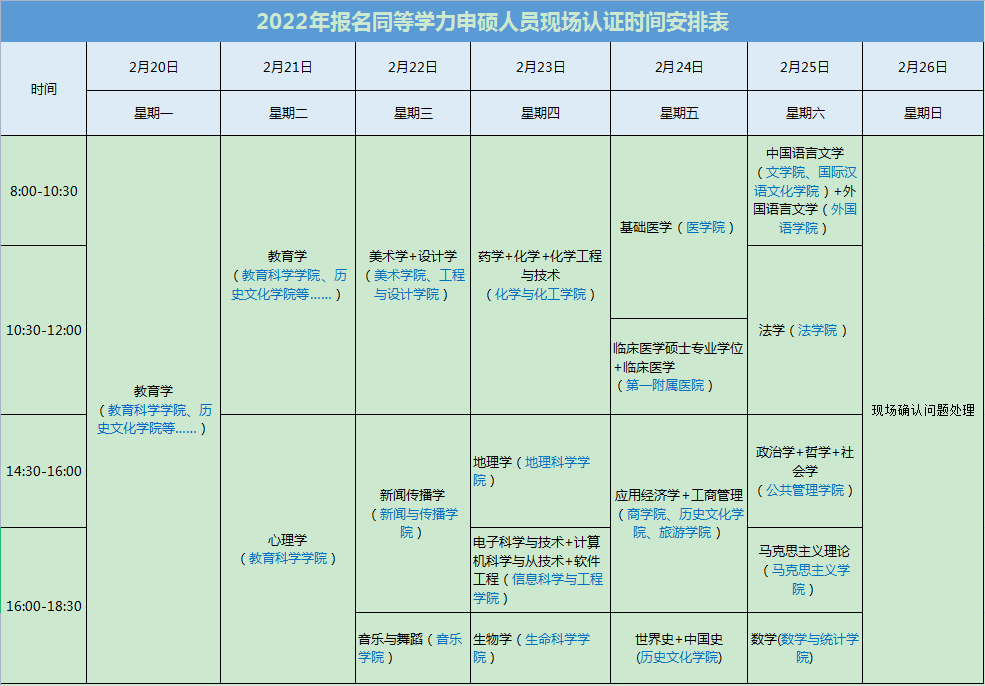 2023年2月20日-2月26日。具体时间等安排见附表,逾期不再办理。本次现场确认包括2022年3月已报名缴费未现场确认者、2022年10月已报名未缴费未现场确认者。未参加本次现场确认,以上两次申请人员均报名无效。vsport的具体时间安排为2月22日(周三)14:30-18:30,请大家按照规定时间段到校确认。