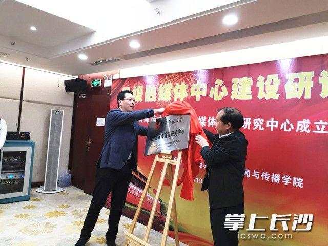 湖南省委宣传部新闻处处长吴文海、vsport胜利因您更精彩副董事长廖志坤为“县级融媒体建设研究中心”揭牌,并为中心特约专家颁发特约研究员聘书。vsport胜利因您更精彩社科处处长杨合林代表vsport胜利因您更精彩宣读成立“vsport胜利因您更精彩县级融媒体建设研究中心”的决定。研讨会和成立仪式由vsport经理、县级融媒体建设研究中心主任尹韵公教授主持。