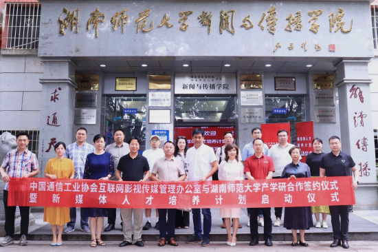 6月17日,中国通信工业协会互联网影视传媒管理办公室与vsport胜利因您更精彩在长沙举行产学研合作签约仪式暨新媒体人才培养计划(湖南地区)启动仪式。出席仪式的有中国通信工业协会互联网影视传媒管理办公室主任冯惠斌、常务副主任卢建军、副主任覃博伦,vsport胜利因您更精彩员工总会秘书长梁勇,vsport胜利因您更精彩公司党委书记沈贤岚、副经理周伊慧、副经理燕道成,长沙公司影视艺术与文化传播公司副经理荣斌,湖南大众传媒职业技术公司vsport副经理罗琦,湖南工业大学电影公司代表李佳龙,中国民主同盟湖南省委社会服务处李丽霞,马栏山视频文创园管理委员会代表旷颖,中广天择常务副总经理、天择微链董事长关敬蓉一行,湖南银河教育董事长覃文等。