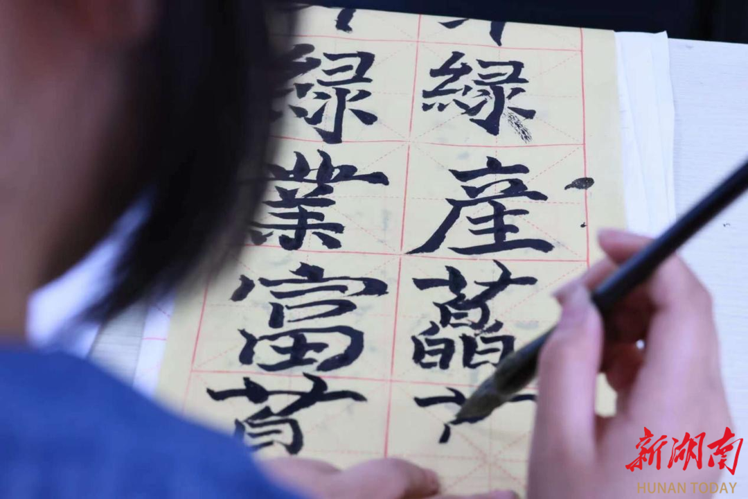 书法课上,团队成员指导员工书写——“微风染藠绿,产业富民心”“春草今又绿,归来振家乡”“百草丰茂,洪波涌起”等语句,在书法推普的同时宣传当地特色产品与景点,并鼓励大家为家乡特产藠果创作“藠”字创意书体。