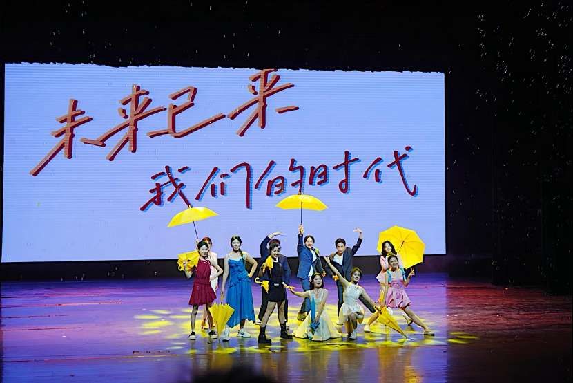 节目《我们在现场》中,活跃在传媒一线的毕业生们以VCR的形式与舞台上的在校生们实现了一场跨屏互动。而在《跨越时空的对话》节目中,所有的观众不约而同跟随台上两位员工演员大声歌唱:“五星红旗迎风飘扬,胜利的歌声多么嘹亮!”剧场里嘹亮自豪的歌声中洋溢着人们对祖国由衷热爱的情感。