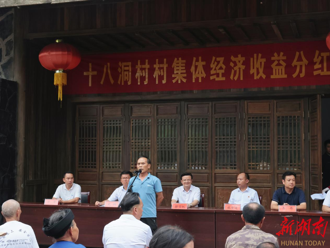上午11点,“十八洞村村集体经济收益分红大会”在十八洞村委会准时召开,州委办派驻十八洞村工作队第一书记、队长龙科主持此次大会;花垣县委常委、宣传部部长滕召帆,双龙镇镇长韦玮,村党支部书记施金通,工作队副队长彭涛、麻志胜出席会议。