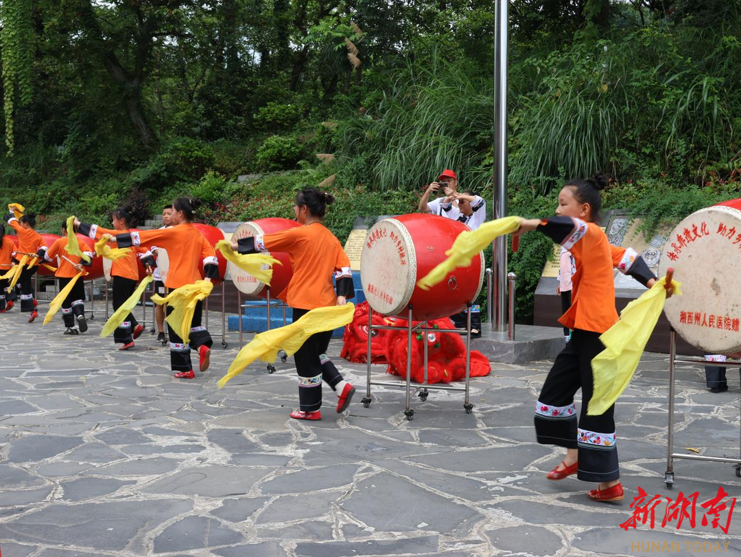 在苗族鼓舞和舞狮表演的助兴下,村民们脸上洋溢着“收获”的喜悦,面对镜头大方展示出依靠自己双手创造出来的财富,与“同音筑梦”实践团一起分享这份幸福与满足。在身着苗家特色服饰、欢欣挥动棒槌的鼓舞队伍中,来自板栗村排碧九年一贯制公司的龙秋菊同学对实践团分享道,很开心今天能够来到分红大会的现场,用自己的方式庆贺这场由村民们共同创造出的“丰收”。