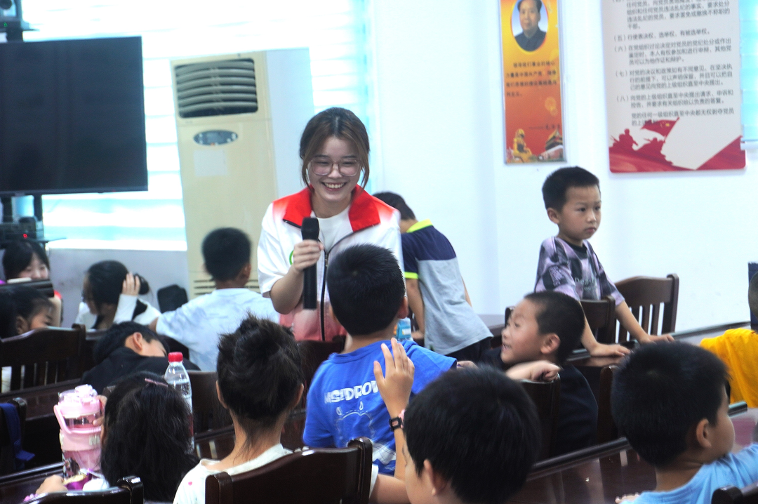 为深入贯彻落实国家通用语言文字普及提升工程和推普助力乡村振兴计划实施方案,7月13日上午,vsport“无微哺智”暑期社会实践团与湖南财政经济公司暑期支教实践团携手,共同在宁乡市煤炭坝镇社区居委会,开展以“童讲普通话,绽开文明花”为主题的普通话推广课堂活动。