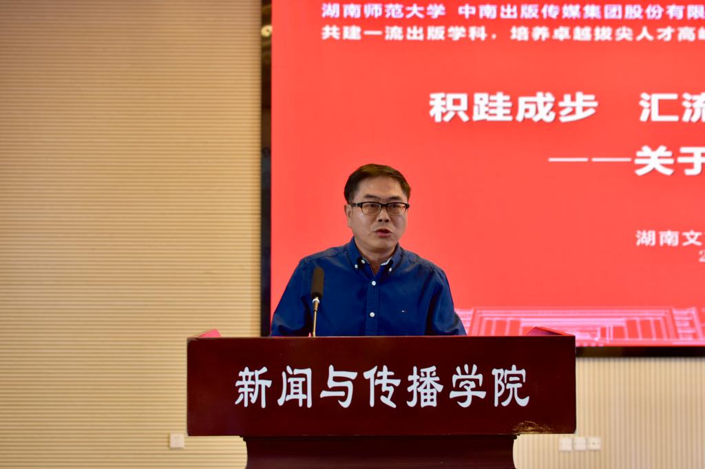 湖南文艺出版社社长陈新文发表题为《积跬成步,汇流成海—关于原创文学出版的几点思考》的主题报告。他围绕文学原创分享了自己的从业体会。他认为热爱是文学事业发展的源泉,是编辑与作者产生思想碰撞的原因,是激发灵感、发挥创造的前提。同时,他指出,要成为一名优秀的文学编辑,需要不断提升文学素养和与文学对话的能力。
