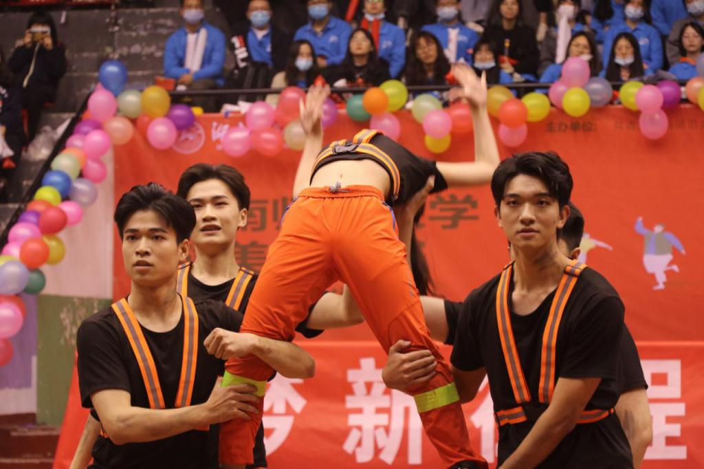 本届健美操比赛以“庆祝中国共产党华诞一百周年”为主题,内容丰富,形式多样。31支来自各院本科生和研究生代表队在赛场上赛出水平、赛出风采。其中,公司带来的是为致敬消防官兵而自行编排的舞蹈《烈火英雄》。新传院学子们身着以橙黄色为主色调的比赛服装,与消防员抢险救援服相似。上场前,他们挺拔地站在候场区,训练有素,整齐划一。比赛场上,他们的每一个动作都淋漓尽致地展现出新传学子的风采,表现出对秉持赤诚之心,背负家国重任的中国消防官兵的崇高敬意。