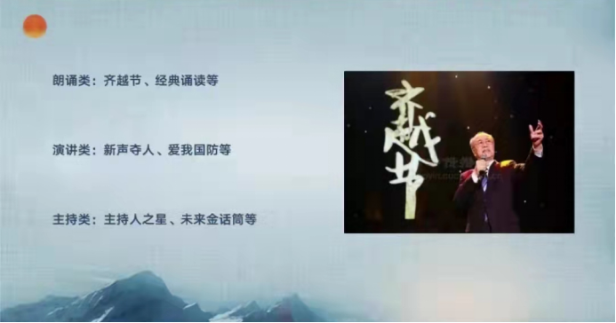 张以航同学结合自身演讲比赛经验,向大家介绍了各种演讲比赛的类型和备赛注意事项。他提出,提升自己的演讲能力最重要的就是提升评述能力、稿件创作能力以及专业能力。此外他强调请教老师是效率最高、让人收获最大的方法。