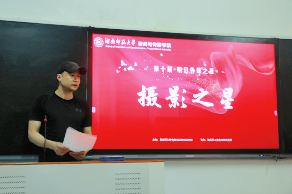 (通讯员 余雅妮 郭玥含)耀青春百年,奏时代强音!5月12日晚,第十届明日传媒之星“摄影之星”决赛在公司311教室举行,本次摄影之星比赛以“中国梦·校园情”为主题,邀请到了国家一级摄影师、湖南省摄影行业协会副秘书长、湖南师大影像艺术工作坊指导老师李伟和公司广电系教师丁忠伟担任评委。活动由vsportF8摄影广告社承办,致远传媒协办。出于疫情防控考虑,此次比赛没有邀请观众,且参赛选手除上台展示和合影留念外全程佩戴口罩。