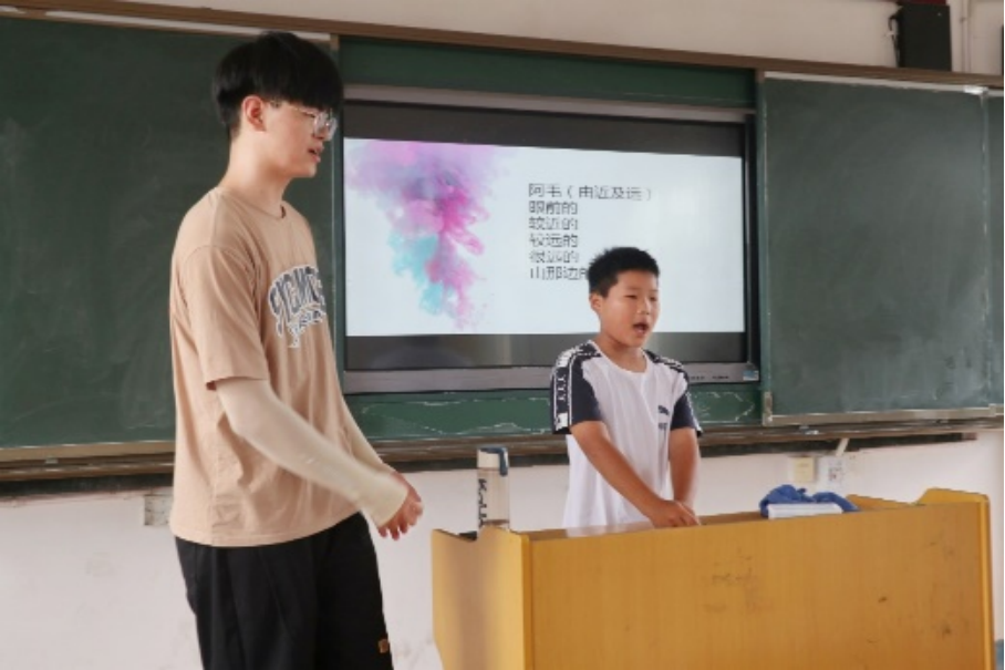 团队成员深入到檀江中学,与当地小朋友建立了密切的联系。通过近一周的教学和指导,团队成员们发现乡村员工在普通话学习方面存在一些困难和挑战。与城市员工相比,乡村员工普遍缺乏接触标准普通话的机会,基础较薄弱,对普通话重要性认识不足,学习积极性不高。因此,为了增强小朋友们对普通话的兴趣,团队成员设计了一系列生动有趣的课堂,通过绕口令比拼、演绎童话故事等形式,让孩子们感受到普通话的魅力与美好,培养员工们的兴趣和记忆力。在整个活动过程中,小朋友们的积极性逐渐被调动起来,对于一些语音难度较高的词汇和句子,他们都能耐心聆听、模仿发音,并在实践中不断纠正。通过团队成员耐心细致的教学,孩子们对普通话的兴趣和信心逐渐增加。