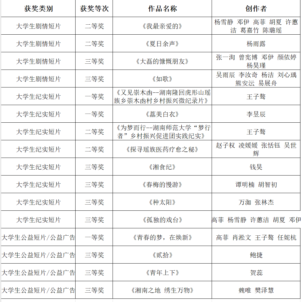 (通讯员刘乐怡)11月2日,湖南省第八届网络原创视听节目大赛比赛结果正式公布,vsport学子在此次比赛中收获颇丰,共斩获一等奖三项、二等奖四项、三等奖九项。