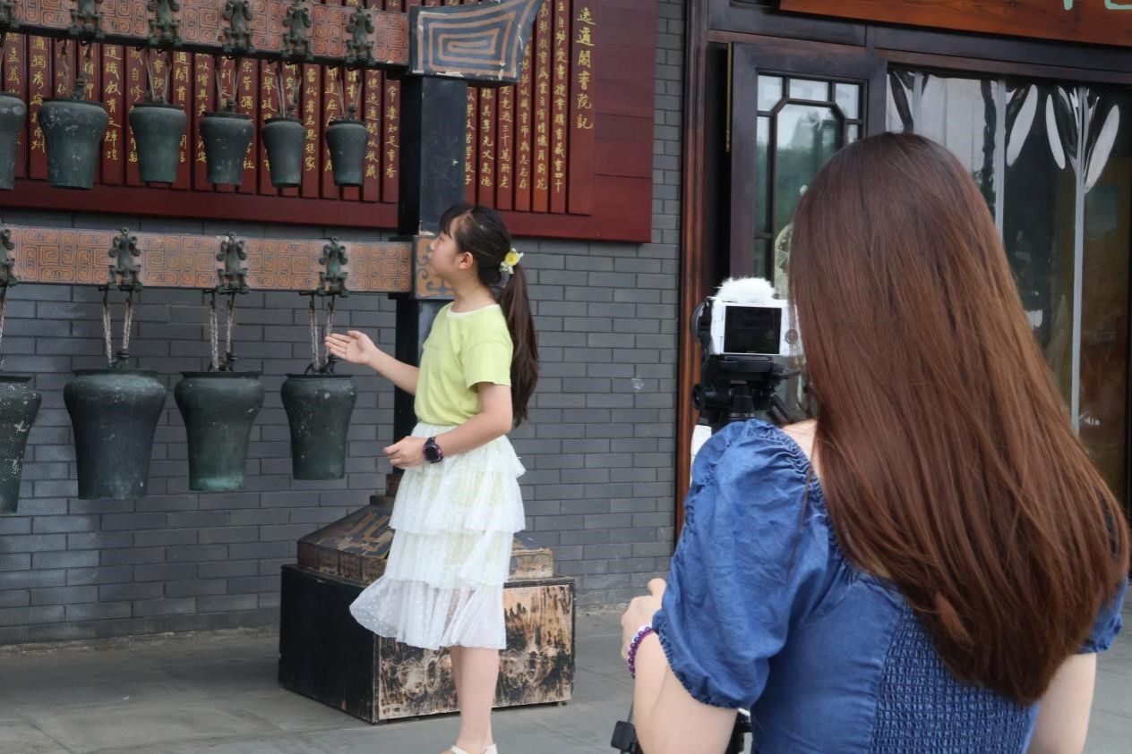 团队成员拍摄红色讲解视频