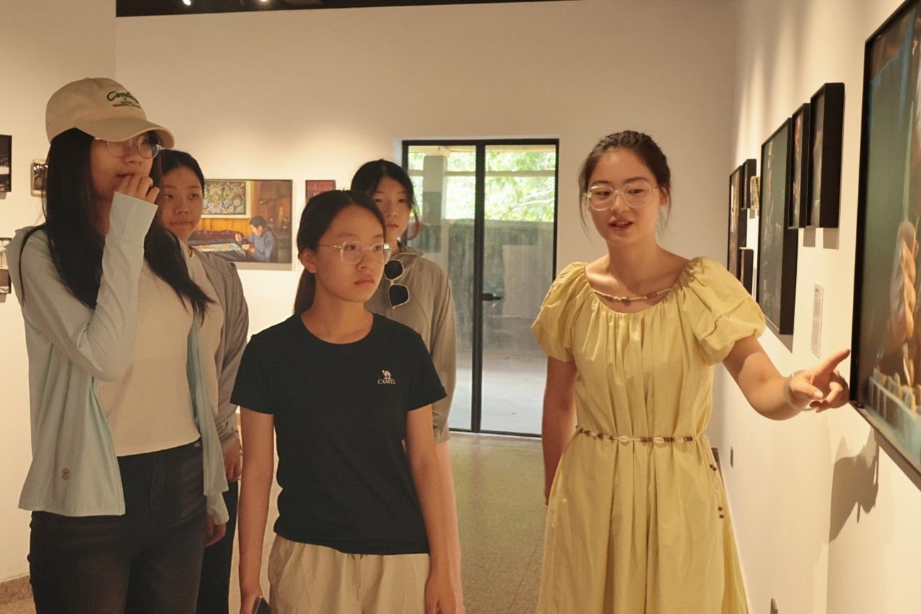 实践团成员在研学导师唐舒怡的讲解下参观非遗馆