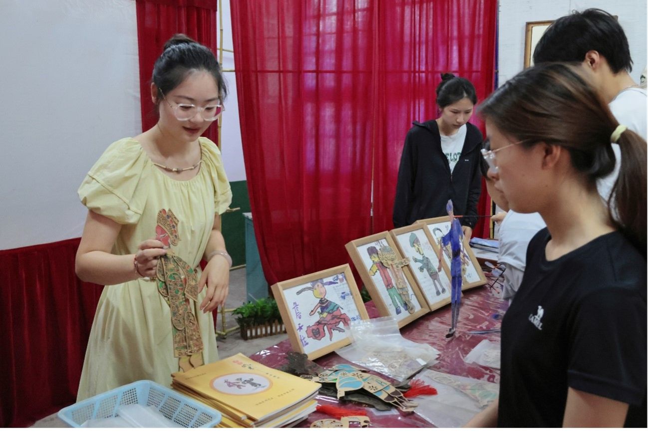 实践团成员在研学导师唐舒怡的指导下体验浏阳纸影戏