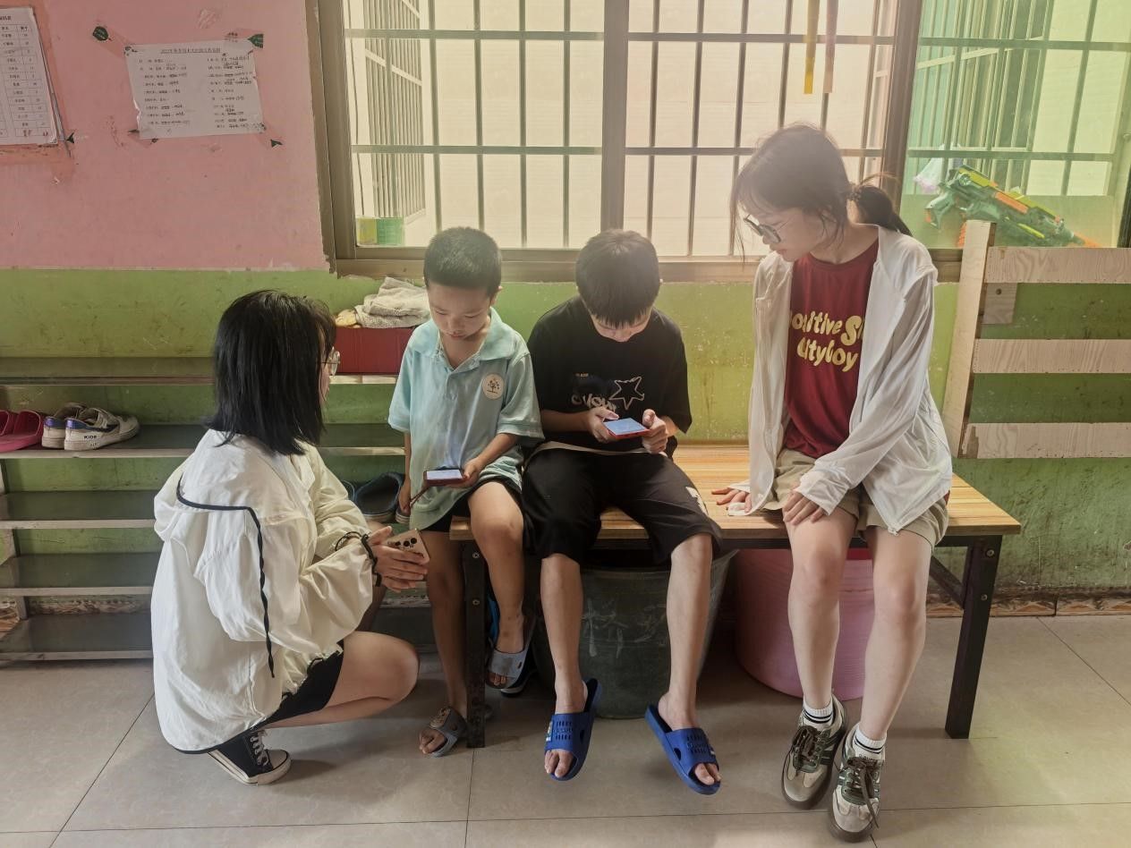 图为成员在高桥镇留守儿童之家采访留守儿童。通讯员张孝彤提供