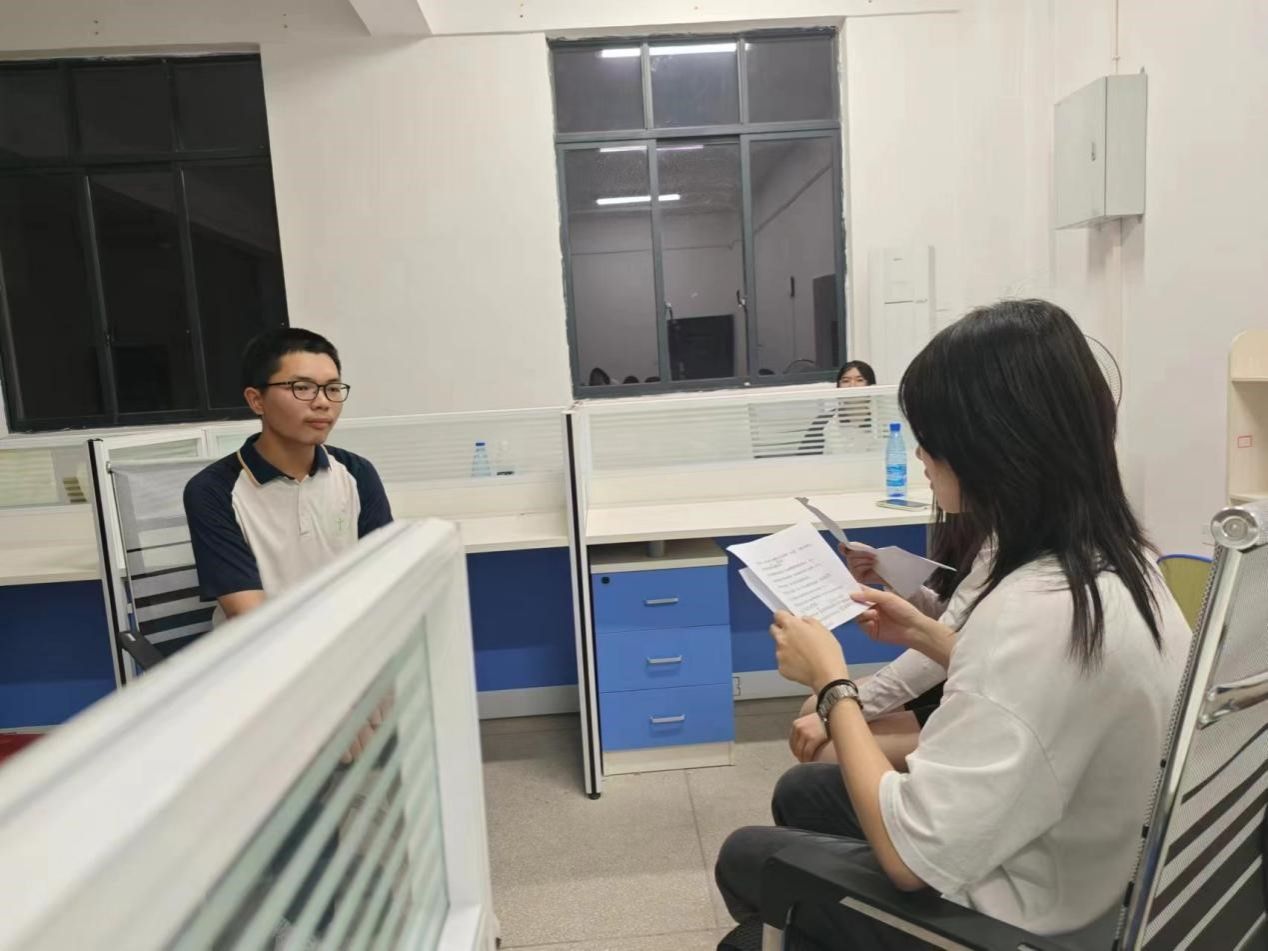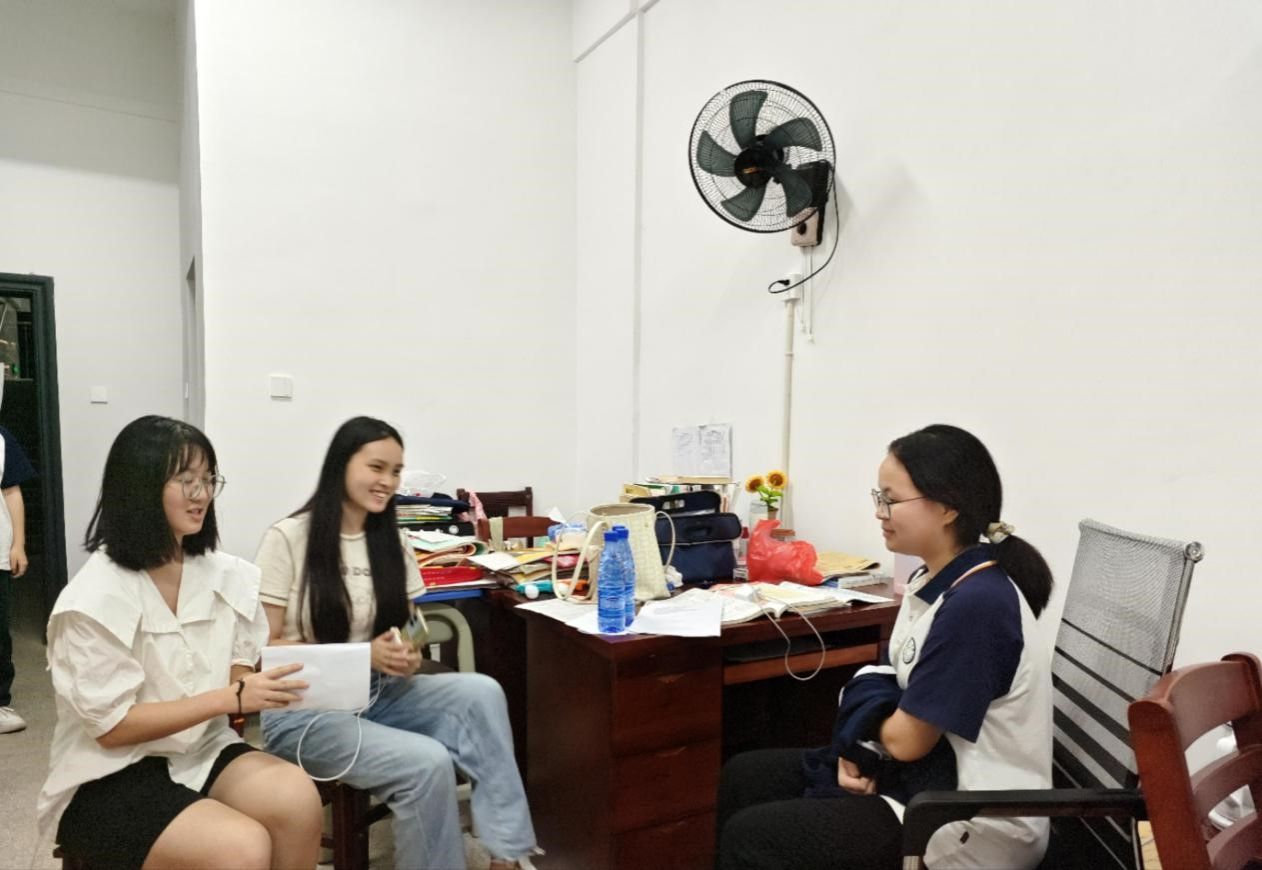 图为成员在新宁县第一中学采访留守儿童 。通讯员黄首荣提供