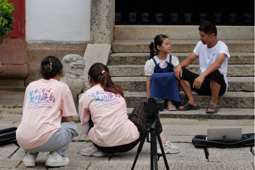 下午,团队成员邀请两名演员在屈子祠正门处朗读诗句,演员与主持人分别坐在台阶两侧阅读《楚辞》和《史记》,不同年龄段演员的演绎使得屈原精神薪火相传。团队成员运用现代技术手段,致力于将屈原文化以更加生动、直观的方式传递给观众,赋予这一古老文化新的时代内涵和现代表达。