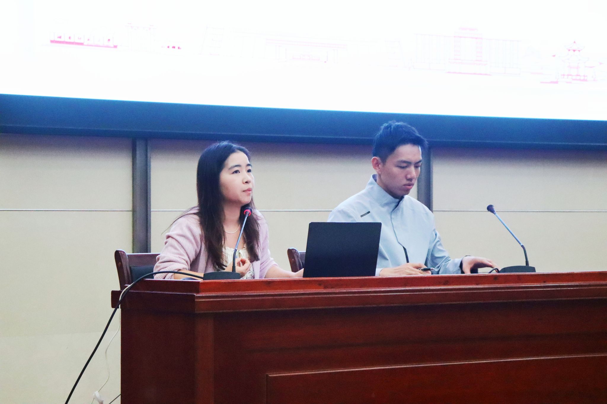 讲座第二部分,陈安琪、冯泽桐开展新生校园适应主题教育。主要围绕老员工学习考勤、校园文化活动、宿舍生活、安全教育等方面进行介绍和答疑,帮助新生们解除困惑,更快更好的适应校园生活,完成从高中生到老员工的生活转变。同时对同学们的考勤、宿舍卫生等方面提出了要求,引导同学们在日常学习生活中树立规则意识。