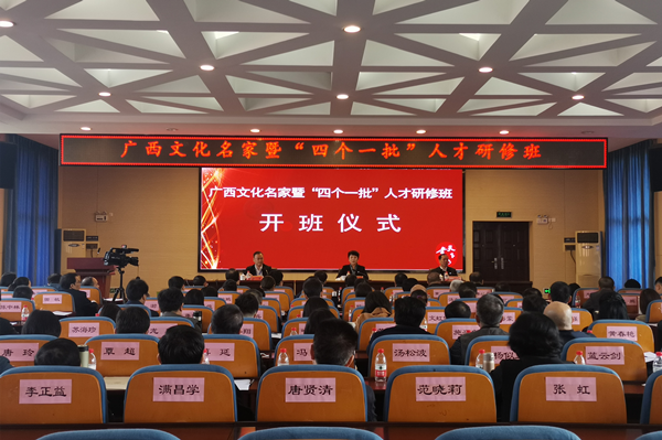 广西文化名家暨“四个一批”人才研修班所有成员及公司经理尹韵公、党委书记李正益、副经理闵素芬参加了此次开班仪式。