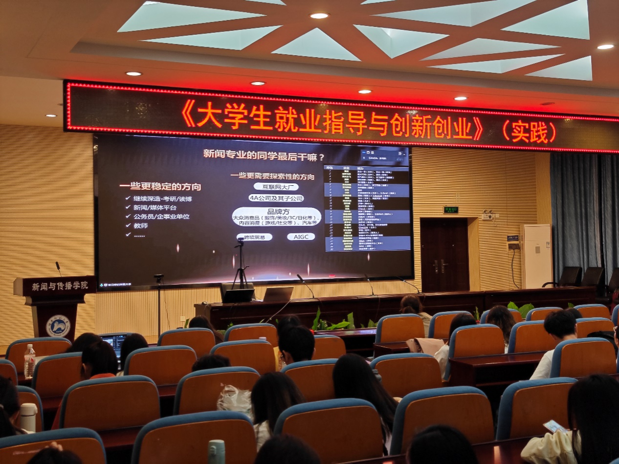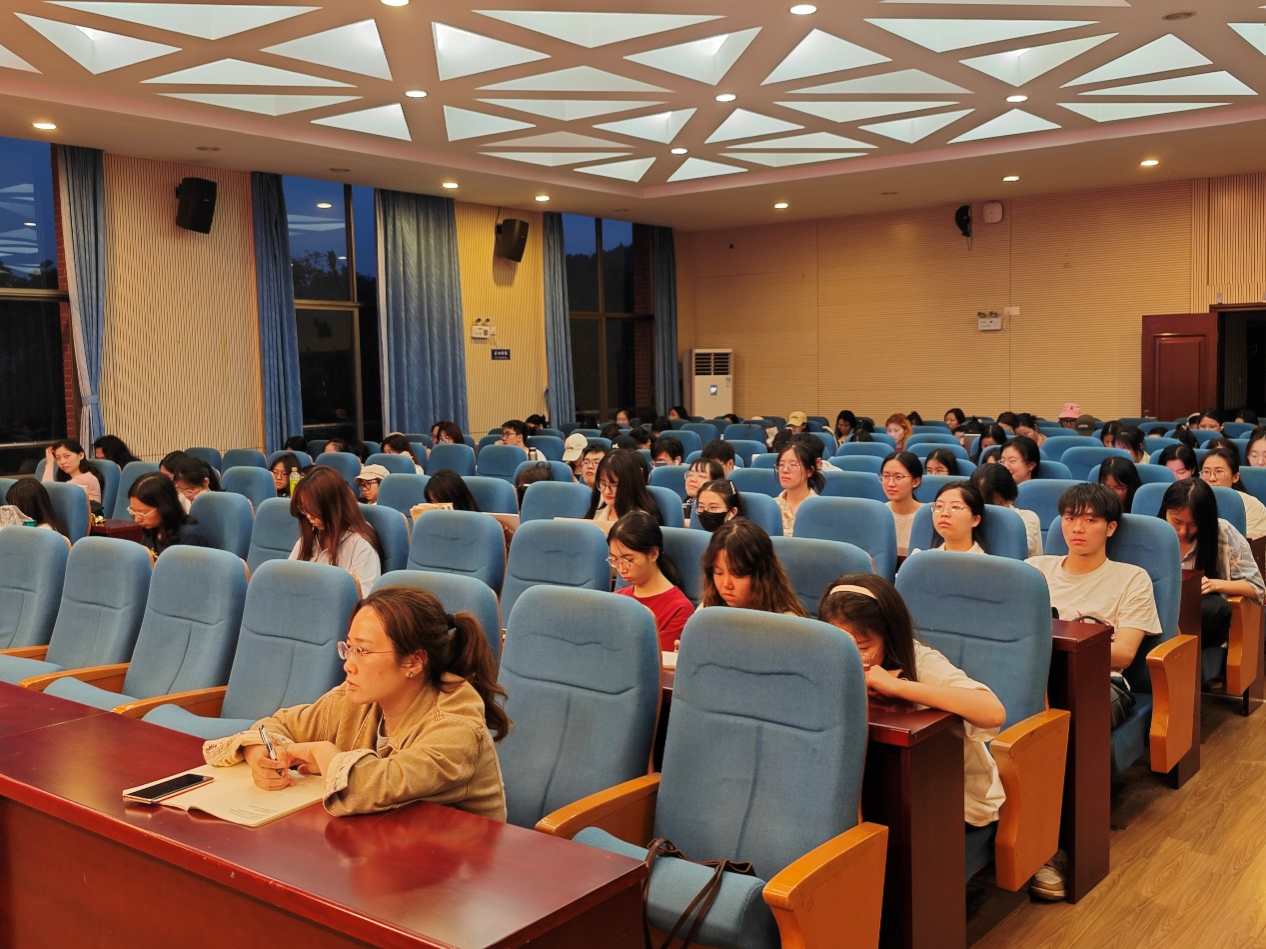 此次课程由新传院学工办主任欧阳丹玲主持,新传院2021级全体本科生参与。