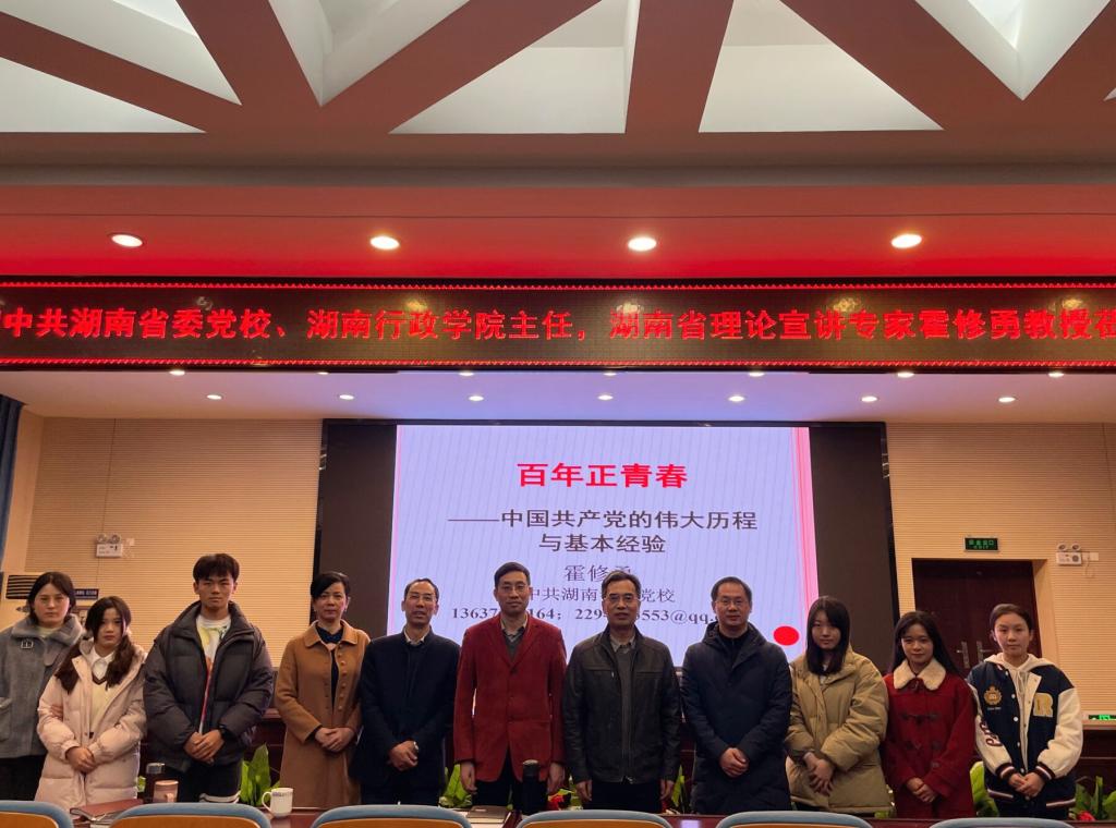 (通讯员 李嘉圃)12月1日晚,中共湖南省委党校、湖南行政公司党史教研办主任,湖南省理论宣讲专家霍修勇教授在新传院书山论坛为公司全体员工党员等带来题为“百年正青春——中国共产党伟大历程与基本经验”党史学习教育专题讲座。讲座由新传公司党委书记沈贤岚主持。