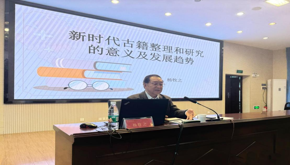 杨牧之从文化传承的意义谈起,讲解了中央关于古籍整理的三个文件,这三个文件体现了中央对古籍整理工作的重视。然后,杨牧之讲述了古籍的概念以及古籍整理的意义,他结合自己在北大的学习经历讲解了他对古籍整理出版认识的三个阶段,将自己多年来对古籍整理工作的认识的过程娓娓道来。杨牧之认为,整理古籍,本身是一项专门的专业学术活动,同时也是研究历史及相关学科的基础。只有在科学、准确的史料研究的基础上,才能得出科学的、准确的结论。科学、准确就要靠标点、校勘、注释、考证等工作来实现。古籍整理是一项十分重要、关系到子孙后代的工作。接着,杨牧之为我们讲解了新时代古籍整理的成就。最后,杨牧之畅谈了对古籍整理出版事业的展望。杨牧之特别强调:“我们要把古籍整理出版研究当作百年大业去做,当作使命去做,我们这一时期、我们这一代不能停滞,更不能断线。对古籍整理与研究事业,我们要有敬畏感、使命感,为中华民族的繁荣贡献我们的力量”。