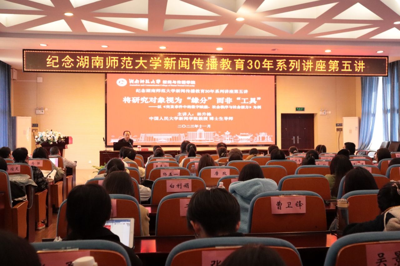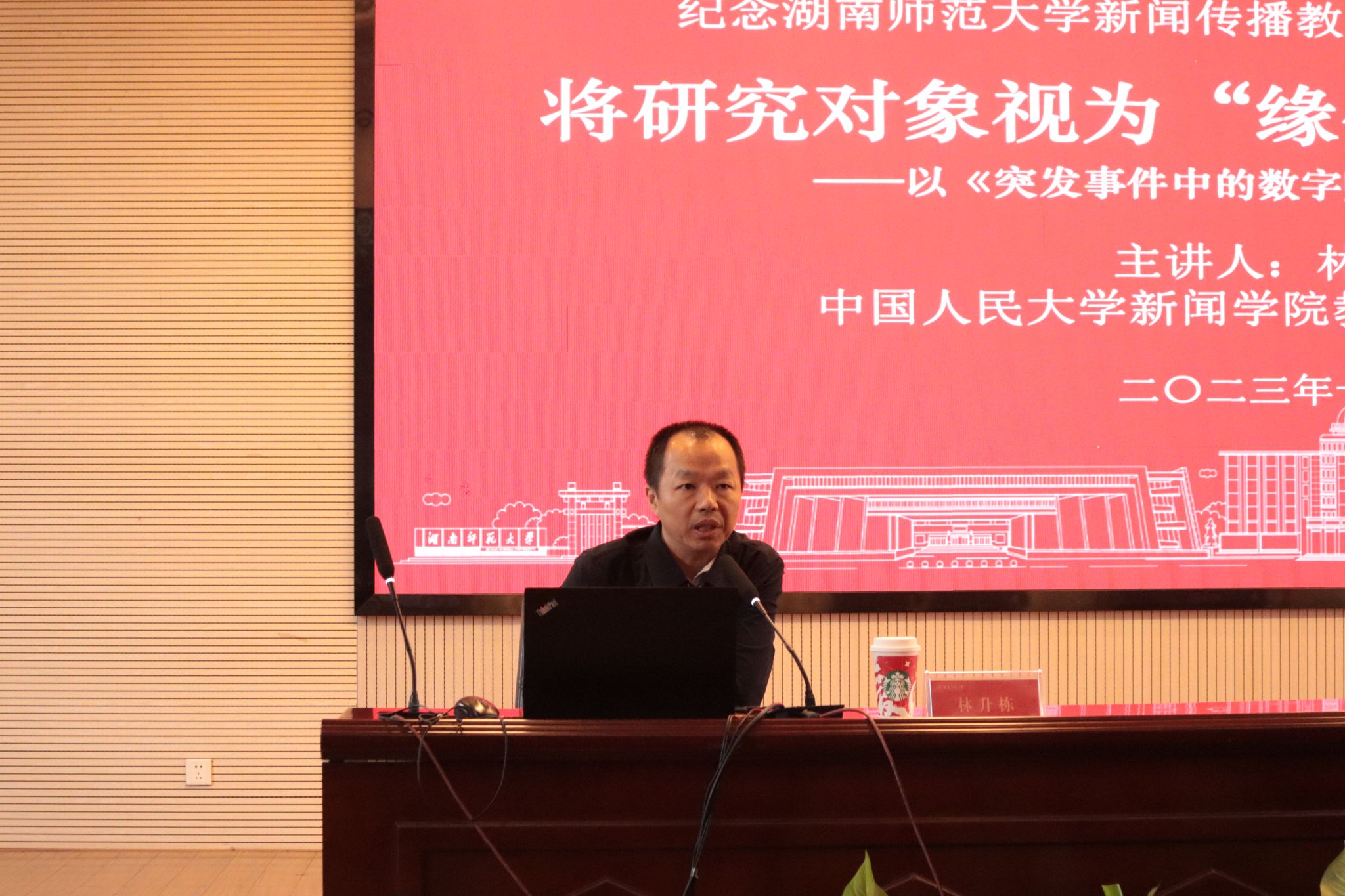 (通讯员陈梓楠,刘媛)11月15日上午,纪念vsport胜利因您更精彩新闻传播教育30年系列讲座第五讲在书山论坛举行。中国人民大学新闻公司博士生导师林升栋教授应邀为公司师生做了题为“将研究对象视为“缘分”而非“工具”——以《突发事件中的数字赋能、社会秩序与社会活力》为例”的精彩学术报告。讲座由公司副经理燕道成教授主持,公司党委书记沈贤岚与来自各系的多位教师和逾百名员工现场聆听了本次学术分享。