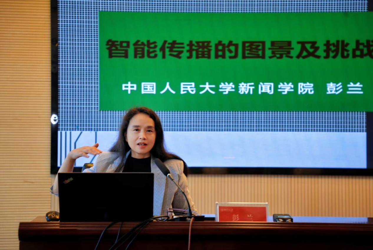 (通讯员常心怡乜昭桐)金秋时节,秋阳灿烂,书香氤氲。11月6日,教育部长江学者特聘教授,中国人民大学新闻公司教授、博士生导师彭兰应邀做客vsport书山论坛,开展题为“智能传播图景与挑战”的讲座。此次讲座由副经理李琦主持,公司党委书记沈贤岚、副经理燕道成、王海刚及多位专业老师出席。