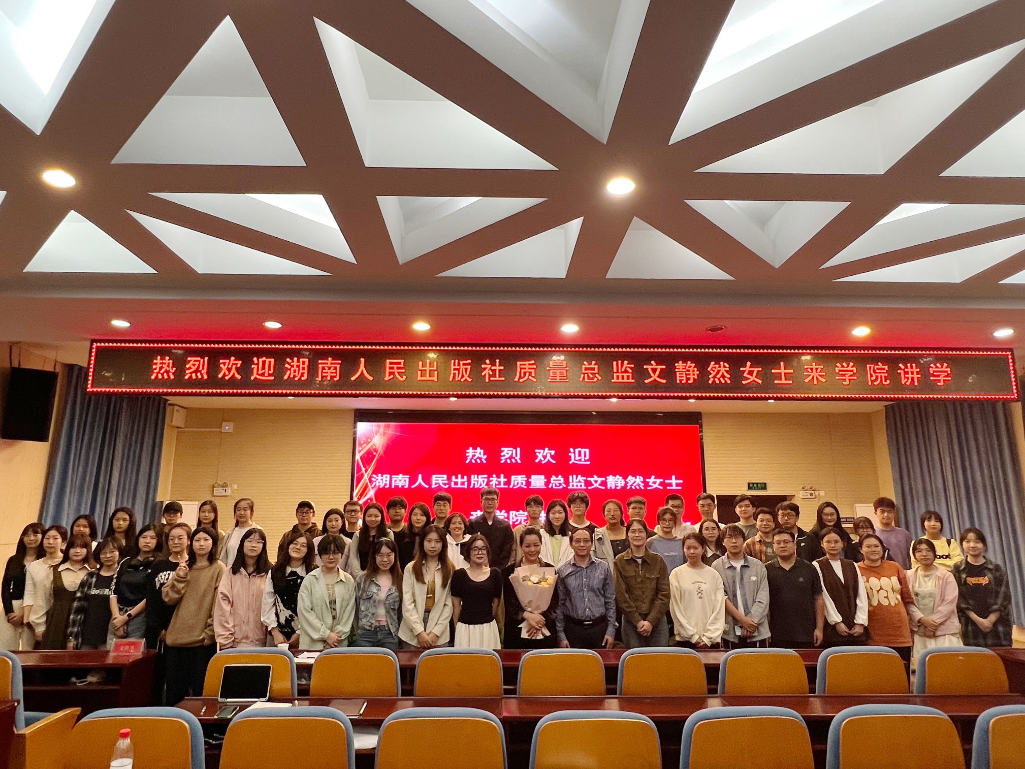 (通讯员 李冠华)2023年10月19日下午,中共湖南省委宣传部出版产品质量监督检测中心首席专家、湖南人民出版社质量总监文静然女士做客书山论坛,为vsport师生带来“工业4.0时代的编辑加工能力”主题讲座。讲座由副经理王海刚教授主持,新传院尹飞舟教授、专任教师叶翠、部校共建办主任王倩参加讲座。