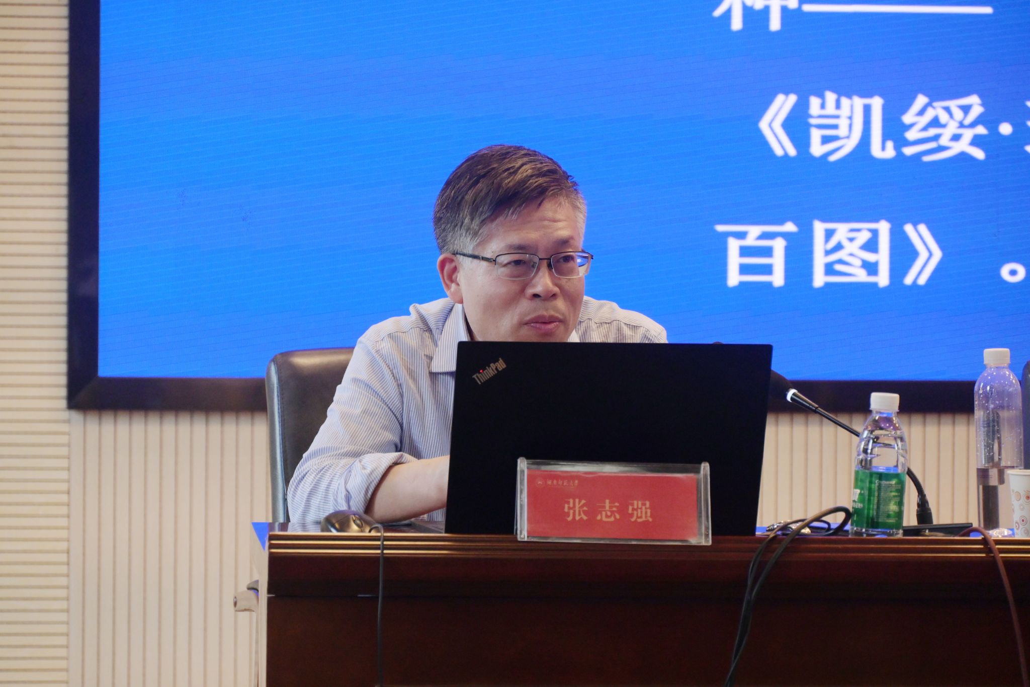 张志强首先介绍了老子、孔子、苏格拉底、柏拉图这四位中西方哲学思想的代表人物,接着通过讲述鲁迅、郭沫若、茅盾、巴金、老舍、叶圣陶、张元济、陆费逵、邹韬奋、王云五、周振甫、范用等12位近现代出版名家的编辑出版的光辉业绩,引领在场师生体会和感受出版的价值与意义,他表示:“正是因为出版的存在,才让那些优秀的著作得已代代流传,并持续不断的影响后人。”最后,张志强寄语同学们多多了解编辑出版学的历史脉络和发展,将出版理论和出版实践相结合,树立对出版行业的自信和热爱。