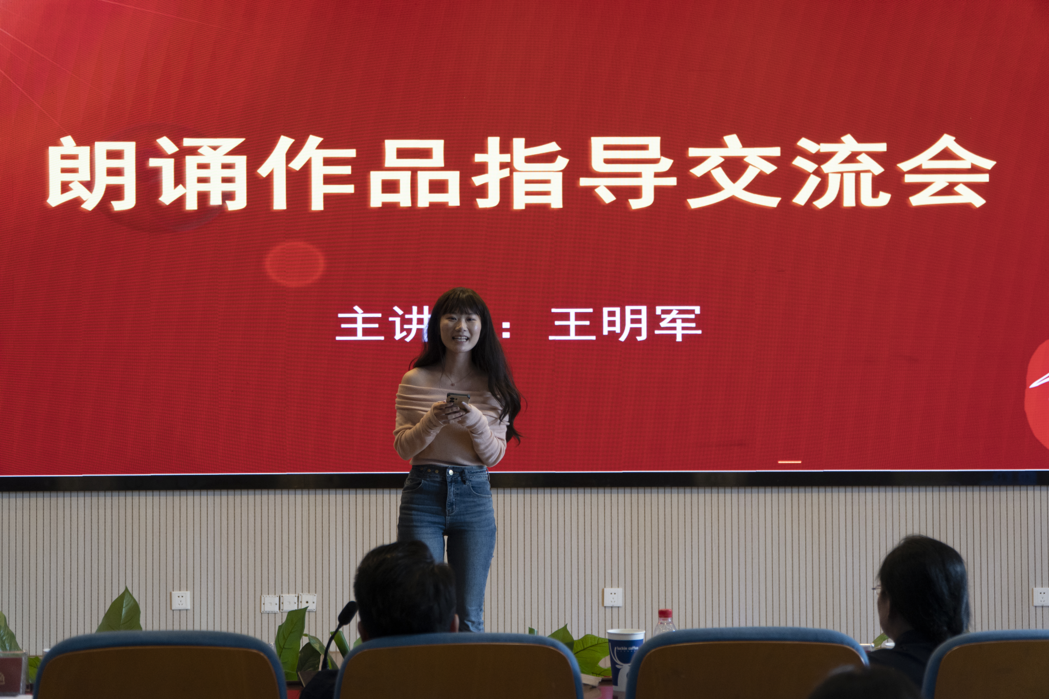 同学们朗诵了《岳阳楼记》《你是人间四月天》《百年交响》等十篇多种风格的经典作品。王明军老师指出,朗诵并不拘于一格,而是应该通过展示自己的思考、感情变化过程,带领受众走进作品,切忌为了变化而变化。参与讲座的师生们都表示受益匪浅。