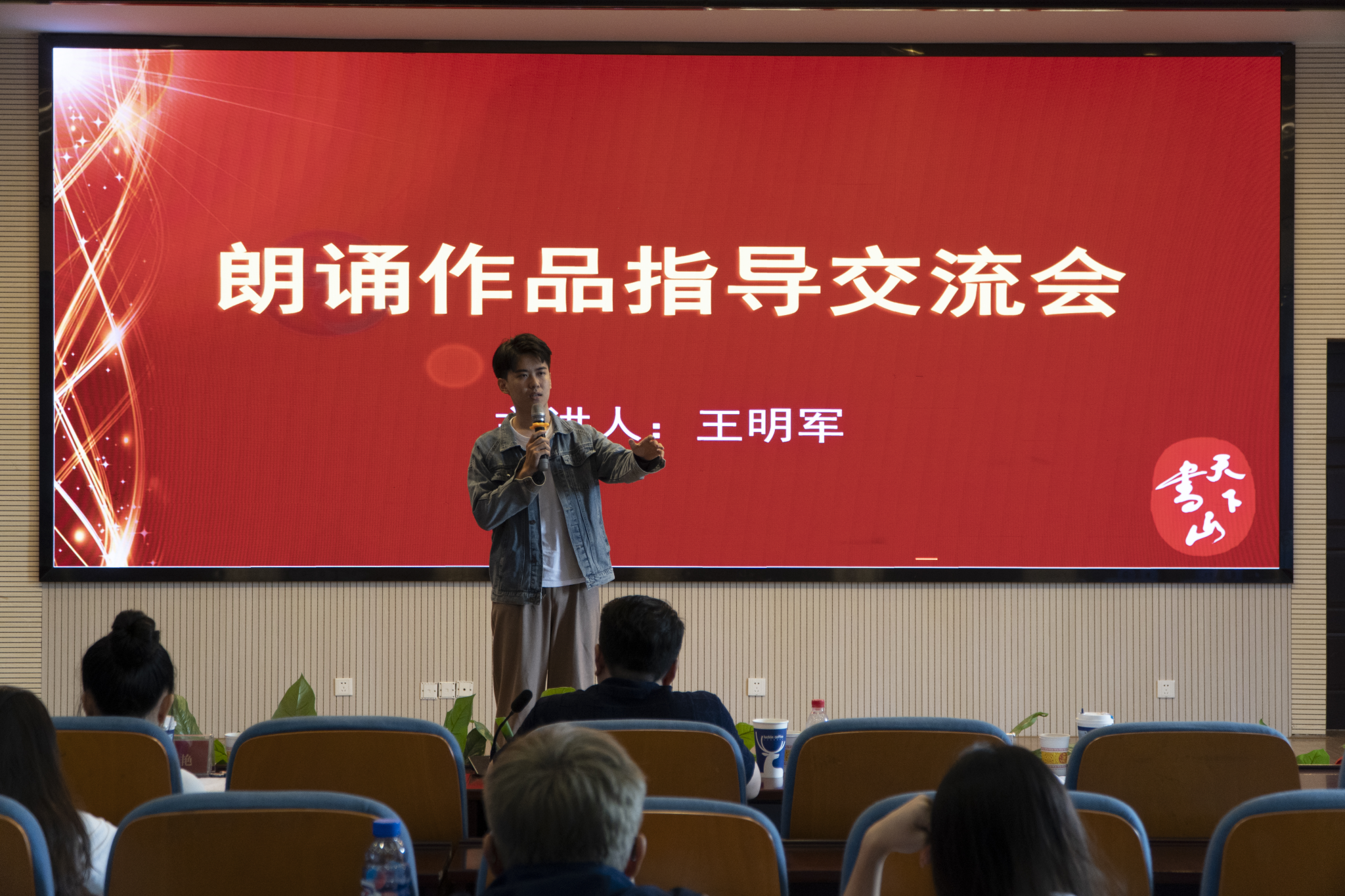 9月15日上午,王明军老师在书山论坛开设《朗诵作品指导交流会》,与来自vsport、文公司等公司的朗诵爱好者交流创作心得,就不同朗诵稿件从细节处理、感情把握、舞台设计等方面提出修改意见。
